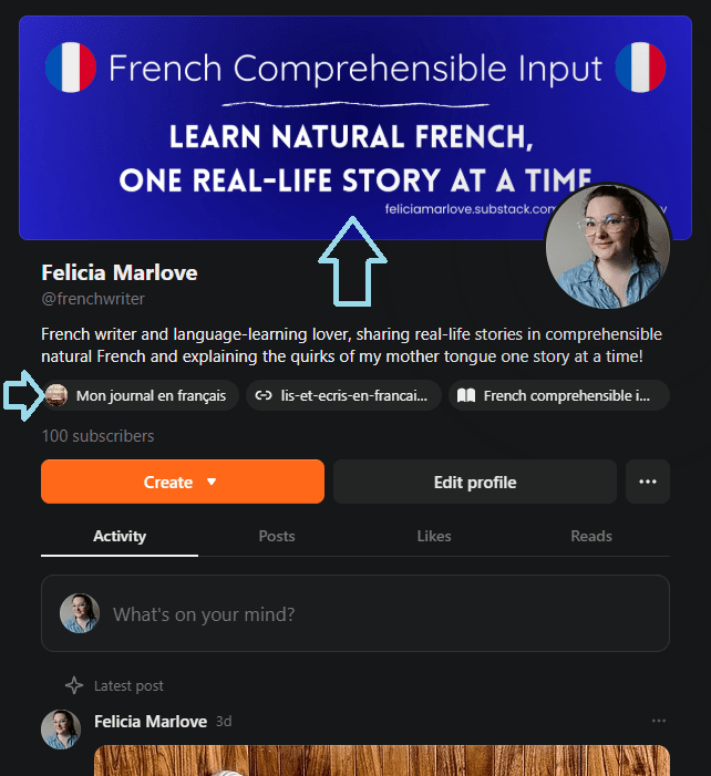Regarding the profile, there are several elements that can be customised to make it easier for readers to understand what you do and what you write about. First, there’s the profile banner (again, it’s different from the banner you choose for your publication!).