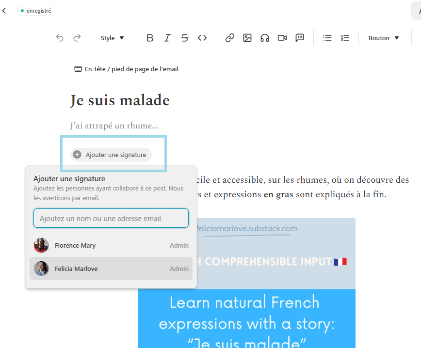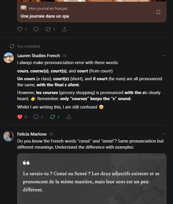 đź’ˇIn the Substack ecosystem, the “publication” is the newsletter. In this example, the publications are “Mon journal en français” and “The Flonicles sans filtres”.